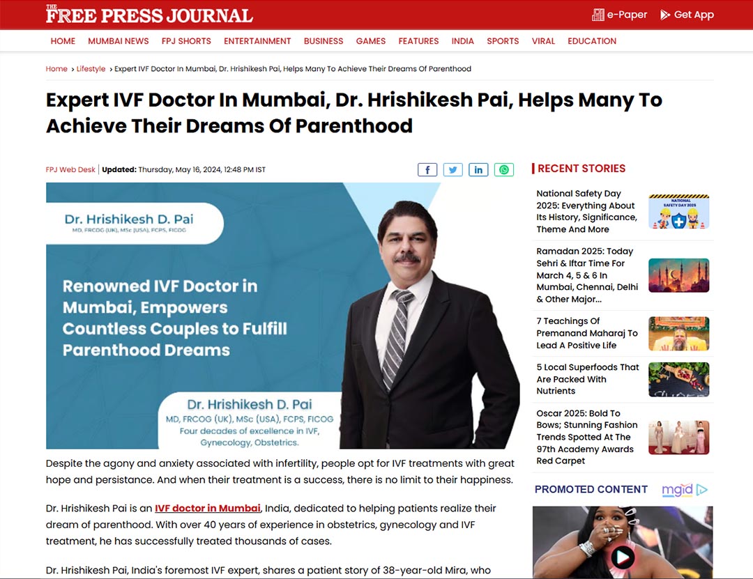 Dr.Hrishikesh Pai is a Gold Medalist in MD from Seth G S Medical College & K E M Hospital, University of Mumbai. He went on to complete his one-year Clinical Fellowship in Reproductive Biology from the Royal Women’s Hospital, Melbourne, Australia in 1989.
